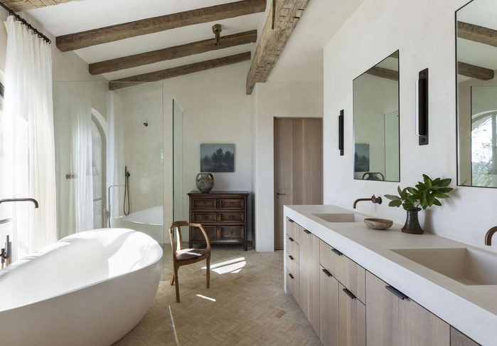 If you’re working with a more modern aesthetic, combining rustic beams with sleek, contemporary furniture or polished metal fixtures can create an interesting contrast, blending old-world charm with modern design elements.