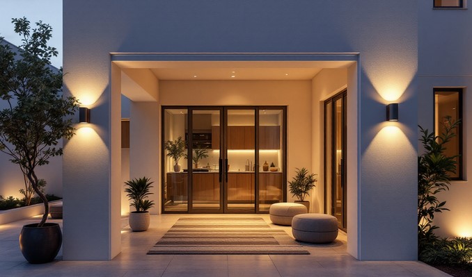 • Deterrence: Criminals love “blind spots.” A well-placed LED sconce eliminates shadows near windows and doors. Modern units often come with Integrated Motion Sensors or “Dusk-to-Dawn” photocells, ensuring your property is never left in the dark even if you forget to flip the switch.